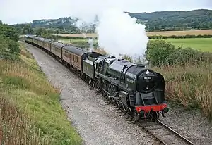 The Gloucestershire Warwickshire Railway (GWSR) have reopened the line through Hayles Abbey Halt, with the first services between Toddington and Winchcombe running on 2 August 1987.[16][17] It is just a half mile from Hailes Abbey itself, protected by English Heritage.