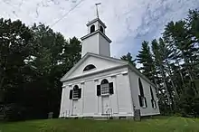 Head Tide Village is located in northern Alna, and is centered on a stretch of Head Tide Road spanning the Sheepscot River between Maine State Route 218 and Maine State Route 194. The majority of the village's buildings are on the east side of the river, but its major public buildings, the 1838 Head Tide Church and the old schoolhouse, are on the west side. Just east of the bridge stands the former Jewett General Store building (1884). The river banks on both sides are in some places lined with the foundational remnants of the village's industrial past, most below the dam (first built 1760) a short distance upstream from the bridge.[2] There is a house whose property borders the Shepscot built in 1787, known as the Spring House, because the spring that used to supply the community with fresh water exists under the Kitchen in the house. A well in its front yard can still be used to draw water.[3]