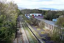 In 2009 the line was mothballed until December 2011 when it was announced that the section of the line to Heathfield would re-opened to facilitate the transport of timber from Heathfield to Chirk in North Wales by Colas Rail.[7][8] In the same month a timber siding was opened at Teigngrace, just before the level crossing at Exeter Road, to allow the timber to be loaded onto the freight trains. Teigngrace lacks a passing loop and trains with empty wagons continue up the line to Heathfield to permit locomotives to run around the waggons using the loop in the disused station. The empty freight train then drives back to the timber sidings at Teigngrace to be loaded. Loading of the timber is carried out by the lorries that bring the timber to the sidings.[9]