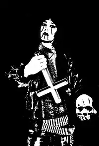 Even the earliest heavy metal used religion in its lyrical themes, notably Black Sabbath, which usually performed with a crucifix, even though their music had messages about black magic.[27] In the 1980s groups such as Slayer and Venom showed a "fascination with religion", which can be seen in "Slayer's groundbreaking 1986 album "Reign in Blood", which features "Larry Carroll's satanic-themed cover art."[27] Metal bands may have been fascinated with religion to antagonize "conservative Christian groups" that criticized metal.[27] Through the late 1980s and into the early 1990s, anti-Christian messages in metal got more extreme, with Deicide releasing songs such as "Kill the Christian."[27]