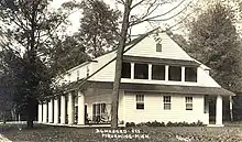 In 1914, Daniel Hebard built this lodge as his periodic residence.[2] In 1923, the brothers sold the operation to Henry Ford; although Ford was primarily interested in the Hebard's 40,000 acres of timber, the brothers insisted he buy the sawmill and the town at the same time.[3] Ford used the town to produce wooden pieces for the frames and bodies of Ford stationwagons.[2] Henry Ford took over Daniel Hebard's lodge for his own personal use, and summered here from 1923 to 1941.[2]