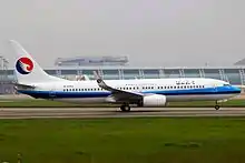 Hebei Airlines (河北航空公司 Héběi Hángkōng gōngsī) is a Chinese airline which has its corporate headquarters in the Shijiazhuang World Trade Plaza Hotel (S: 石家庄世贸广场酒店, T: 石家莊世貿廣場酒店, P: Shíjiāzhuāng Shìmào Guǎngchǎng Jiǔdiàn) in Chang'an District, Shijiazhuang, Hebei Province.[1][2][3]
