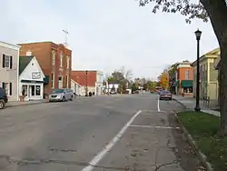 As the twentieth century turned, the village grew slowly, with developers platting a small addition after the Detroit United Interurban Railway constructed lines southwest of the village in 1900. In 1916, a fire destroyed a row of frame buildings on Main Street and anew brick commercial block was constructed. As the village grew, several residential structures were added. However, the size of the town center essentially remained as it had, and 100 years later the core of the village remains intact.[2]