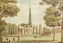 His father Diedrich Jacob was a merchant and city councillor in Demmin, Swedish Pommerania, who sent him out learning the trade in Stettin.[1] In 1746 he set up a supplies store in sugar, coffee and tobacco in Dresden. On 4 March 1747, at the age of 23, he married then 17-year-old Caroline Tugendreich Friedeborn. In 1755, Schimmelmann was responsible for tariff collection in Kursachsen. By the end of 1756 he delivered grain and flour to the Prussian army and was appointed as Geheimrat. In December 1756 or 1757 he bought pillaged Meissen porcelain from the Prussian king, which were shipped in 110 cases to Hamburg, and auctioned on 11 July 1758.[2] (He secretly returned a part to the Saxon king August III.[3]) In April Frederick the Great ordered him to contact Veitel Heine Ephraim and Daniel Itzig and deliver silver to the two mint masters who were leasing all the Prussian mints.[4] Already in July 1758 Schimmelmann leased the mint in Schwerin (Mecklenburg) from Frederick II, Duke of Mecklenburg-Schwerin and started to compete with Ephraim & Itzig. Schimmelmann produced debased coins, but with a higher silver content than the debased Prussian coins.[5] Schimmelmann employed more than a hundred people at the end of 1759; one year later already almost 300 people.[6]