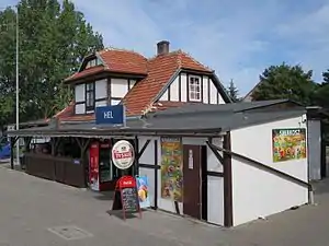 The Hel railway station is a railway station serving the town of Hel, in the Pomeranian Voivodeship, Poland. The station opened in 1922 and is located on the Reda–Hel railway. The train services are operated by Przewozy Regionalne.