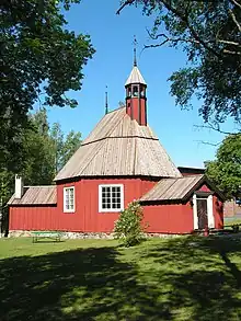 Helena Elisabeth Church was built on one of the largest islands of the Holmöarna group near Umeå in northern Sweden. Decades after the church was replaced with a larger building, in the 1950s the structure was moved to Västerbottens museum where it is still a church and an exhibit.