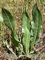 Helianthella californica is a taprooted perennial herb producing erect stems up to about 60 centimeters (2 feet) tall. The many lance-shaped leaves are up to 4 centimeters (1.6 inches) wide and up to 26 cm (11 inches) long, smooth or slightly toothed along the edges. The inflorescence holds one or more sunflower-like flower heads. Each head has a center of golden disc florets with purple or reddish parts, and a fringe of yellow ray florets one or two centimeters (0.4-0.8 inches) long.[4]