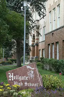 Hellgate High School is a four-year public high school in the western United States, located in Missoula, Montana. The largest high school in the Missoula County Public Schools District, Hellgate has approximately 1200 students and a faculty of approximately 100.[2] It is an AA high school, the classification given to Montana's largest high schools, and was ranked Montana's ninth-best high school by US News in 2014.[3]
