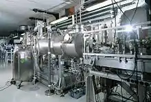 • ELBE is a Center for High-Power Radiation Sources and HZDR's largest research facility. It encompasses a superconducting Electron Linear accelerator for beams with high Brilliance and low Emittance (ELBE) and two FEL for the mid and far infrared spectra. In addition, the electron beam delivers multiple other secondary beams (quasi-monochromatic X-rays, polarized Bremsstrahlung, pulsed neutron beams and pulsed mono-energetic positrons).[3]