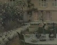 Le Sidaner's paintings and pastels were widely collected throughout his career. His seductive views of the gardens he created in the ruins of the medieval fortress at Gerberoy, with their recently vacated tables dappled in sunlight and overhung by roses, have cemented his reputation as a unique artist who does not fit easily into an art movement .[3]