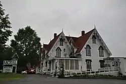 The Henrietta Brewer House, originally The Cottage House and now Redclyffe Shore Motel, is a historic private residence located on U.S. Route 1 in Robbinston, Maine, United States. Erected between 1861 and 1863, the house is one of the finest examples of high-style Gothic Revival architecture in Down East Maine. The house was listed on the National Register of Historic Places in 1983.[1] Cabins built along the Passamaquoddy Bay are used as motel units.