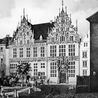 Steel engraving of the Wandschneiderhaus (then Kramer-Amtshaus) in Bremen after a drawing by Friedrich Wilhelm Kohl from 1848. Place of performance of Henriette Grabaus in the 1820s.