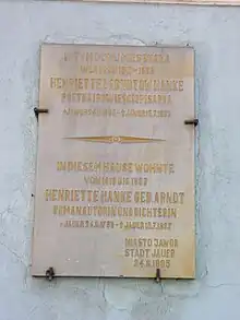 Memorial plaque for Henriette Hanke on her house in Jawor
