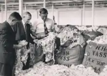 Once he had everything in place, the records flowed. Curran achieved the top price for a clip from the Australian Capital Territory for at least 29 seasons over the period 1933 to 1964. His clips briefly held the top price under the wartime appraisement scheme (i.e. when open markets were closed over the 1939-1944 seasons). He topped the Goulburn or Sydney wool sales on 19 occasions; set the state and national records for top price for eight seasons; achieved the Commonwealth record price for six seasons; as well as four separate world record prices.[6] His wool was also the first to gain £100 for a single bale and he was the first Australian grazier to earn £1 for 1lb of wool (i.e. a ‘pound for pound’). His world record price of 435d, set in 1945, was recorded when two Milanese buyers competed, head-to-head, for his clip.[7] Surprisingly, these records were all achieved with flocks primarily pastured on land now covered by Canberra's outer northern suburbs.[8]