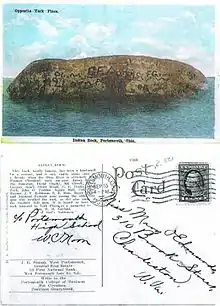 Lorberg also promoted the Indian Head Rock by featuring it in his popular souvenir postcards of the Portsmouth area.[8]