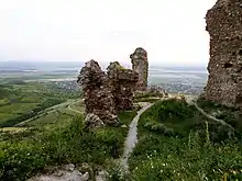 After Desiderius' death, Henry – according to historian Pál Engel – inherited the lordship of Zaránd County with its accessories, including Világos Castle (today ruins in Șiria, Romania). Henry became nominal ispán of Zaránd County still in that year.[1] In September 1331, Henry and his mother jointly leased and donated the ispánate, the castle of Világos and its accessories – villages Világos, Galsa (Galșa), Meszt (Mâsca), Füzes and Appadsig with a mill along the river Chigere – to a certain magister Anthony. It is possible that Henry was granted Zaránd County as perpetual ispánate because of Desiderius' heroic death. Pál Engel considered the donation letter was, in fact, the appointment of Anthony as vice-ispán of the county.[2] In contrast, Attila Zsoldos argues that Henry donated the county and its accessories without royal approval by violating the system of honor, whereby his officials were entitled to enjoy all revenues accrued from their offices, but only for the time they held those offices. Zsoldos emphasizes that Lawrence Nagymartoni was already referred to as ispán of Zaránd County in May 1332, just half a year after the contract, and Henry never gained any dignities in the royal court despite his father saved the life of Charles in the Battle of Posada.[3] Tibor Szőcs considers that Henry was still a minor in 1331, because his mother was also mentioned as a person acting in the donation letter. He also adds that the charter was issued in the kingdom's capital Visegrád, which weakens Zsoldos' argument. Consequently, Szőcs argues that Charles I granted Zaránd County and its accessories to Desiderius' widow and minor son, who appointed Anthony as their vice-ispán. For some reasons (perhaps because of Henry's potential greed for heritage), the relationship has deteriorated between Henry and the monarch, who, therefore, annulled the previous donation.[4]