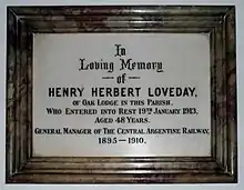 Henry Herbert Loveday (20 May 1864 – 19 January 1913) was a British railway executive who was general manager of the Central Argentine Railway from 1895 to 1910.[1] His father, also Henry Herbert, was a chief inspector of the Midland Railway Company in Derby, England, who in 1877 gave evidence in court for the prosecution relating to the theft of the company's property.[2]