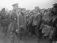King George V inspecting the 13th (Scottish Horse) Battalion, Black Watch (149th Brigade, 50th Division) on the Maubeuge-Avesnes road. With the King are General Sir Henry Rawlinson, Major-General Henry Cholmondeley Jackson and Brigadier-General Percy M. Robinson.