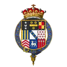 In France, Jermyn became the leading figure in the 'Louvre faction', a group of English royalists who had attached themselves to Henrietta Maria's court-in-exile, based initially out of the Louvre Palace.[7] Following The Fronde, in 1653 the Queen Dowager swapped accommodation with Anne of Austria and her court relocated to the Palais-Royal.[8] Other members of the faction included Henry Wilmot, Lord John Byron, Kenelm Digby, George Digby, Henry Percy, John Colepeper and Charles Gerard. The group was marked by their close adherence to Henrietta Maria, their pro-French outlook and their opposition to the influence of Hyde over Charles II. Jermyn proposed to Charles a plan to cede the Channel Islands to France in exchange for military aid. Jermyn succeeding in getting large grants from the king's allowance and was able to live in relative luxury, despite the court itself being impoverished.[9] When Charles went to Breda, Jermyn remained in Paris with Henrietta Maria, who persuaded her son to create him Earl of St Albans on 27 April 1660.[10]