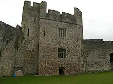 Having escaped the death penalty for his involvement in the regicide Marten was sent into internal exile, first in the far north of England and then (1665) to Windsor Castle, where he remained until Charles II ordered him to be moved further away from himself. In 1668 Marten was sent to Chepstow, in Wales. Marten's imprisonment there lasted some twelve years but does not appear to have been unduly arduous, at least at first; he had a suite of rooms in what was then known as Bigod's Tower (now known as Marten's Tower) and seems to have been able to travel outside at times. His legitimate wife Margaret lived apart from him, remaining at the family home in Berkshire, but he was attended there by Mary Ward, his common-law wife.[4] Marten died at Chepstow Castle on 9 September 1680,[2] having choked while eating his supper, and was buried beneath the floor at an entryway of Priory and Parish Church of St Mary, Chepstow, Monmouthshire, Wales, UK.