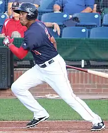 Ramos split the 2010 season between the Gulf Coast League Red Sox and the Lowell Spinners, hitting a combined .281/.341/.400/.741 with 3 home runs and 28 RBI.[2] He spent the 2011 and 2012 season with the Greenville Drive; hitting .262/.299/.383/.682 with 5 home runs and 43 RBI in 2011, and .254/.327/.381/.708 with 8 home runs and 63 RBI in 2012.[3] Ramos spent the 2013 season with the Salem Red Sox, hitting .252/.330/.416/.745 with 12 home runs and 55 RBI. His 2014 season was spent with the Portland Sea Dogs, hitting .326/.368/.431/.799 with 2 home runs and 23 RBI, but playing in only 43 games due to a stress fracture in his left leg.[4] Ramos split the 2015 season between the GCL, Lowell, and Portland, hitting a combined .257/.335/.347/.682 with 11 RBI.[5] He split the 2016 season between Portland and the Pawtucket Red Sox, hitting a combined .263/.306/.402/.708 with 8 home runs and 40 RBI. He became a free agent following the season on November 7, 2016.[3][6]