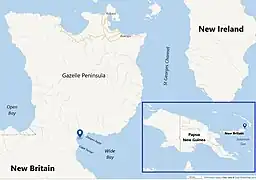 4. 1 2 3 Gazelle Peninsula, New Britain: provisional map Archived 31 December 2018 at the Wayback Machine, Corps of Engineers, U.S. Army, 1943. Retrieved 31 December 2018.
