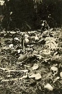 Scattered remains of victims of the Tol massacres discovered by Australian troops c. March 1945