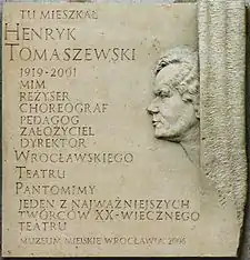 Henryk Tomaszewski aka Heinrich Karl Koenig (1919–2001) was a Polish mime artist and theatre director, born in Poznań, Poland. He settled in Cracow in 1945 to study theatre after the end of World War II during which he studied at Iwo Gall's Theatre Studio from 1945 to 1947 and ballet under Feliks Parnell. Tomaszewski left Parnell's company in 1949 and resettled in Wrocław, where he worked as a ballet dancer in the Opera and already there began to develop his own concept of mime.