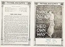 Her Own Way is a lost[1] 1915 silent film drama directed by Herbert Blaché and starring Florence Reed. It is based on a 1903 Broadway play by Clyde Fitch that was a starring vehicle for Maxine Elliott.[2] The movie was filmed, in part, at the Isle of Palms, South Carolina.[3]