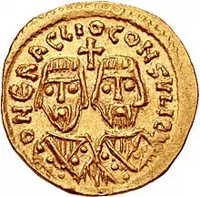 Gold solidus struck during the revolt of the Heraclii, depicting Heraclius the Elder and his son, the future Emperor Heraclius, wearing consular robes.