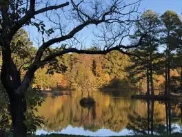 Multiple, sometimes overlapping trails encircle Herb Parsons Lake.[2] A bike trail of hard-packed silt and clay stretches through the woods for 9.7 miles.[11] A shorter walking trail of seven miles features signs that denote the species of trees around the lake.[12]