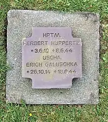 Two days later, during Battle for Caen, Huppertz was shot down and killed in action in his Fw 190 A-8 (Werknummer 730440—factory number) by P-47 fighters near Cintheaux, in the combat area of Caen.[25][60] He was replaced by Hauptmann Josef Wurmheller as commander of III. Gruppe.[61] He was posthumously promoted to Major (major) and awarded the Knight's Cross of the Iron Cross with Oak Leaves (Ritterkreuz des Eisernen Kreuzes mit Eichenlaub) on 24 June, the 512th officer or soldier of the Wehrmacht so honored.[39]