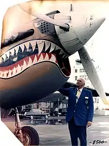 Fisher with the P-40 in which he had his 2,500th flight in the type, c. 1976.