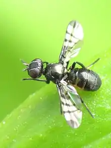 It is a genus of distinctive, small to medium-sized, dark species about 3.5-5.5 mm long, with patterned wings. The head is variably yellowish, reddish, or darkened, whilst the body is either shining black or black dusted with grey.[3] Many are found in marshland or calcareous grassland locations and in coastal wetlands.[4]