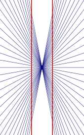 The Hering illusion is one of the geometrical-optical illusions and was discovered by the German physiologist Ewald Hering in 1861.[1] When two straight and parallel lines are presented in front of a radial background (like the spokes of a bicycle), the lines appear as if they were bowed outwards. The Orbison illusion is one of its variants, while the Wundt illusion produces a similar, but inverted effect.