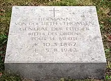 Hermann von der Lieth-Thomsen died on 5 May 1942 in Sylt and was buried in the Invalidenfriedhof Cemetery in Berlin.