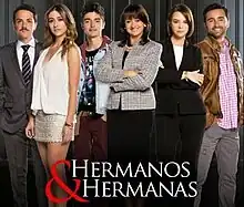 Hermanos y hermanas is a Colombian telenovela produced by Vista Producciones for RCN Televisión,[2] based on the American television series created by Jon Robin Baitz, titled Brothers & Sisters.[3] It stars Verónica Orozco and Andrés Toro as the titular characters. It premiered on September 12, 2017, and concluded on January 10, 2018.[1] In its first episode it obtained a total of 5.3 million viewers,[4] becoming the sixth most watched program in Colombia and without being able to be a leader of audience in its schedule.[4]