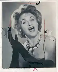 Between 1951 and 1969 Gingold worked mostly in the US. Her first engagement there was at the Brattle Theatre in Cambridge, Massachusetts in It's About Time, a revue that incorporated some of her London material.[16] In December 1953, she opened in John Murray Anderson's Almanac which made her an instant Broadway success and for which she won the Donaldson Award in 1954.[16] She also became a regular guest on talk shows.[5] Her jazz cabaret album la gingold, with musical direction by Buster Davis, was released in 1956.