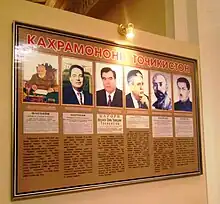 Portraits of recipients of the title in a museum in Khujand.
