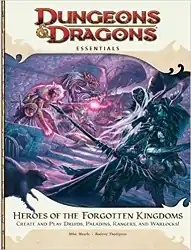 Heroes of the Forgotten Kingdoms includes new builds and character options for the druid (the Sentinel), the paladin (the Cavalier), the ranger (the Hunter and the Scout), and the warlock (the Hexblade).[1] "Each class comes with a set of new powers, class features, paragon paths, epic destinies, and more [...]. In addition to new builds, this book presents expanded information and racial traits for some of the game’s most popular races, including dragonborn, drow, half-elves, half-orcs, and tieflings".[2]