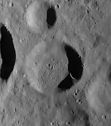 This formation is an undistinguished, circular crater. The interior floor is relatively flat and featureless. There is a tiny craterlet along the eastern rim that has a slightly higher albedo than the remainder of the crater.