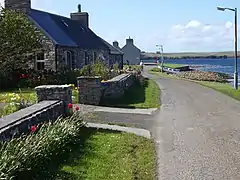 View along the street where cottages overlook Widewall Bay