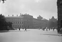 Herzog-Max-Burg was severely damaged by Allied bombs in April 1944, with only the tower—called Max-Turm[2]—surviving.[1][3][4] After the war, discussions between state and city building offices and historic preservationists resulted in the decision to tear down all remnants of the building except the surviving tower.[5]