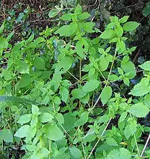 Hesperocnide tenella, also known as western nettle or western stingingnettle, is native to California and northern Baja California. It grows in chaparral, oak woodland, and coastal sage scrub communities up to 1,000 metres (3,300 ft) elevation.