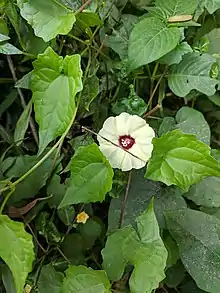 Hewittia malabarica is a flowering plant in the monotypic genus Hewittia Wight & Arn., belonging to the family Convolvulaceae and widespread throughout tropical Africa, Asia, and Polynesia. It is a climbing or prostrate perennial herb with slender stems and flowers that are pale yellow, cream, or white with a purple center, and large leaves that can be used as a cooked vegetable or used in folk medicine with the roots. The stems can be used to make ropes.