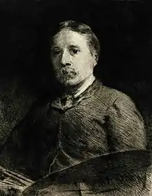When he was 17 years old Heywood Hardy left the family home in Bath after an argument with his quick-tempered father and removed to Keynsham near Bristol.[2] His first two paintings, landscapes, were accepted for exhibition at The Royal Academy in 1864[3] In the same year he was appointed an Ensign in the 7th Somersetshire Rifle Volunteer Corps, a part-time position.[4] Later that year he left Keynsham to study at the École des Beaux-Arts in Paris where his principal teacher was Isidore Pils. Hardy spent much of his spare time copying paintings in the Louvre.[5]