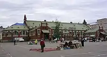 Although the building designed by architect Selim A. Lindqvist in 1903 was believed to originally have served as a Russian cavalry barracks, it has been a market hall since the beginning.[1] Of the market halls in the city centre, it was known for its grocery offerings for a long time, but as the Hietalahdentori market square next to it started gaining publicity about illegal trade of alcoholic beverages and tobacco by foreign tourists, this had a negative effect on the market hall's activity.