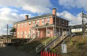 The station consists of a single island platform connected to thewooden station building by a level crossing. A Hoki Type 5700 Hopper car is on display outside the station.