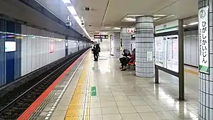 The station is an underground station with a single island platform located on the second story underground. The ticket gates are located on the first story underground.