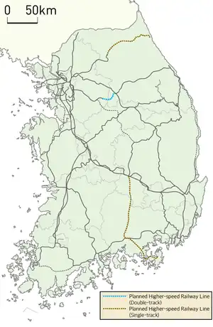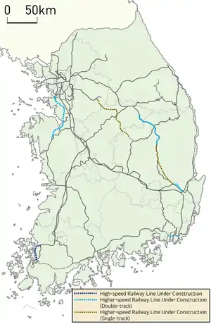 - High-speed railway lines (고속철도노선) can run at speeds of 300 km/h (186 mph) or more on the majority of tracks.